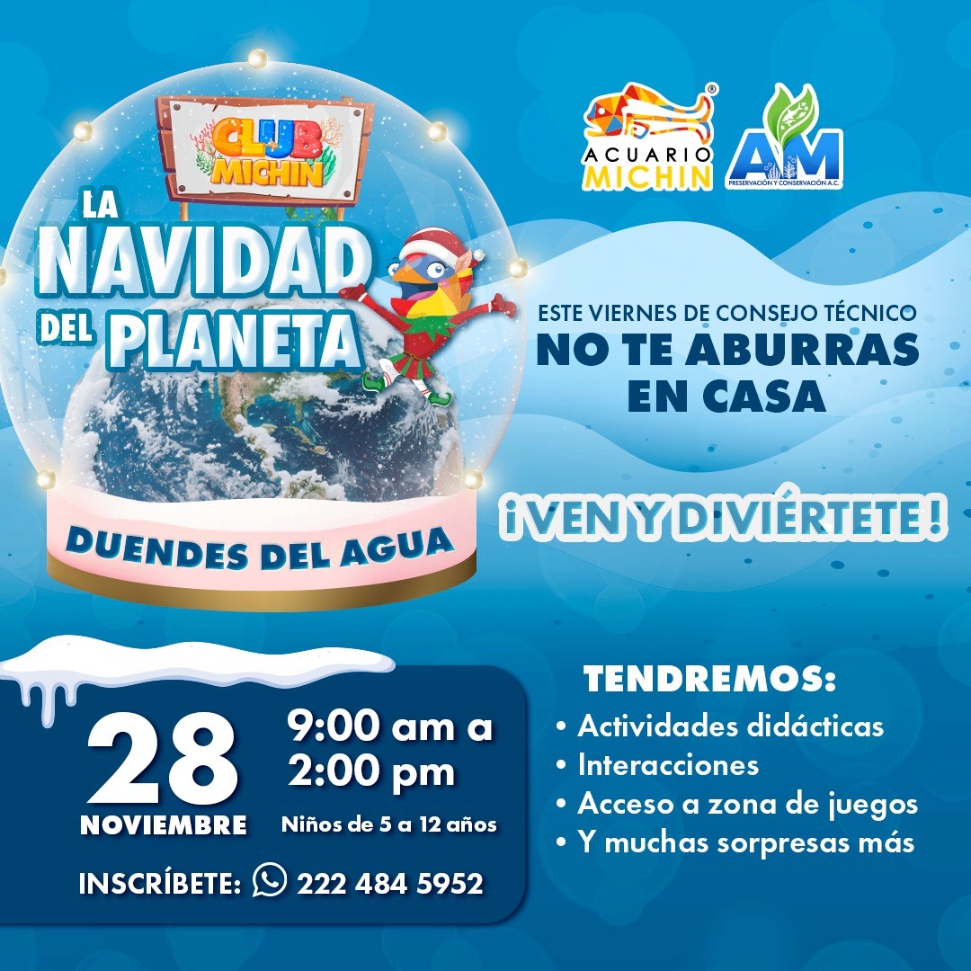 “La Navidad del Planeta: Duendes del Agua”, 28 de noviembre, 9:00 am a 2:00 pm en Acuario Michin Puebla. Registro al: 2224845952.
